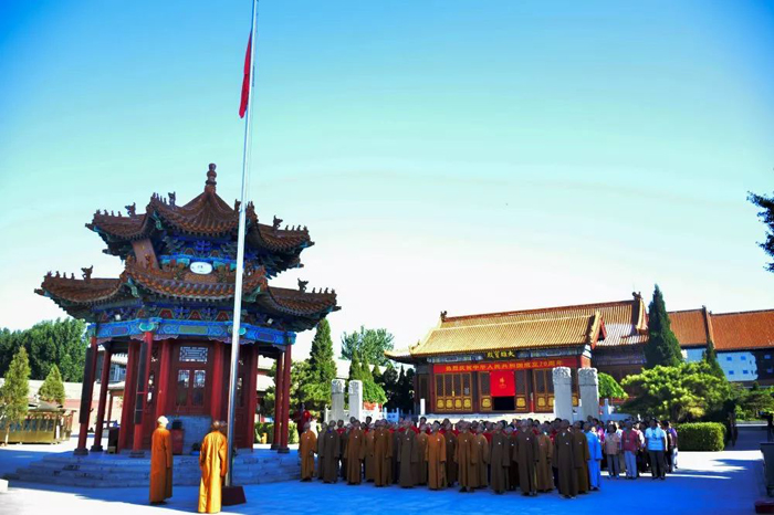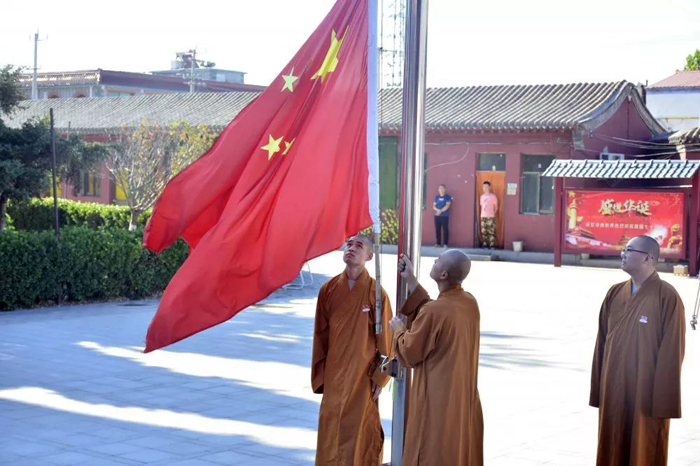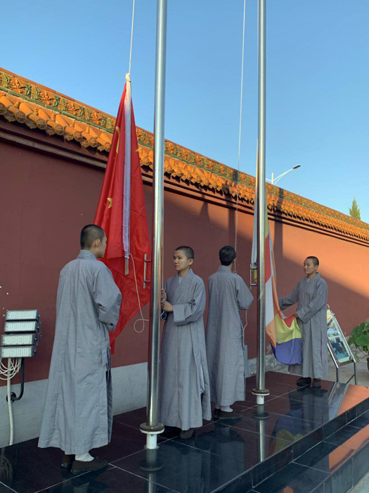 保定佛教资讯:2019年7月1日,建党节,即中国共产党建党日。迎着初升的太阳,保定观音寺、百国极乐寺等寺院为庆祝中国共产党建党98周年,隆重举行升国旗仪式,感恩伟大的党,祝福伟大的祖国繁荣昌盛。