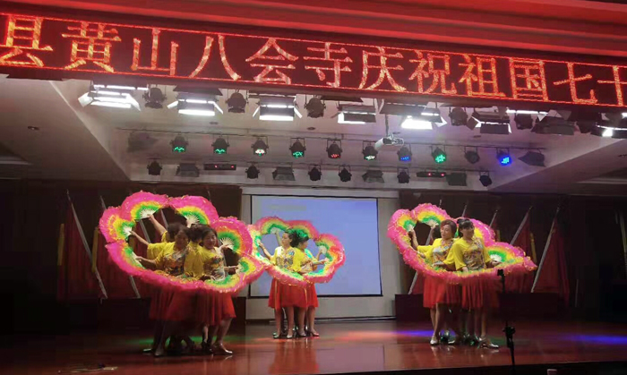 演出活动在全体共唱国歌声中开始,曲阳历史悠久,人杰地灵,此次演出所有节目都是居士们筹备的,演职人员都是义工。节目内容新颖,热烈,有朗诵、歌舞、独唱、评剧、还有川剧变脸、古筝重奏渔舟唱晚等精彩内容,八会寺住持能振(德成)法师还带领居士们唱诵了佛教梵呗宝鼎赞。