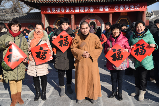 保定佛教资讯:2017年1月20日,农历正月二十三,即民俗中的“小年” 市佛协驻地真觉禅寺(大慈阁)举办第九届迎新春“赠福”送春联活动进行庆祝。