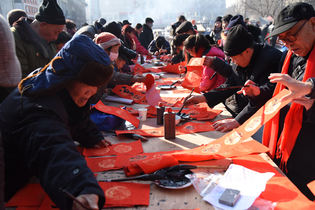 春联不仅是迎新春的民俗,也展现了中华文化书法艺术的深厚典雅,更增添了浓浓的喜庆气氛。