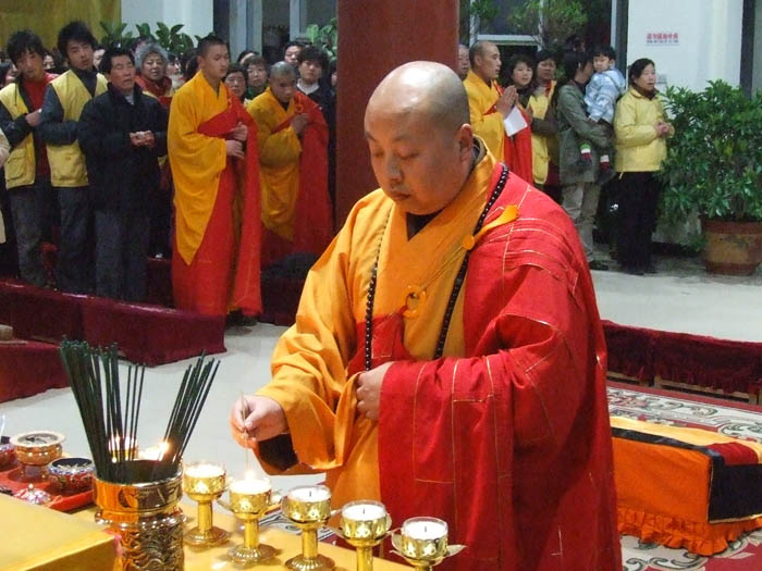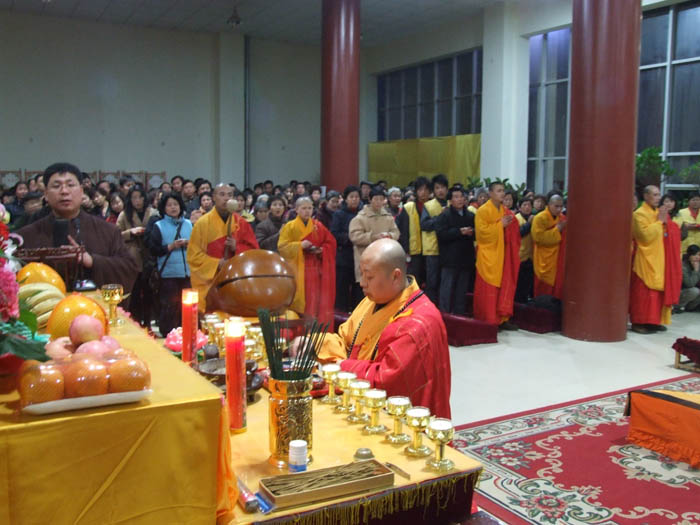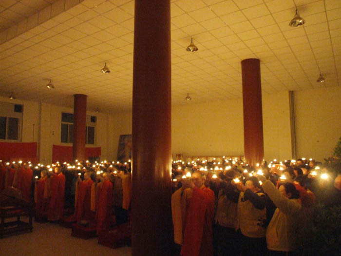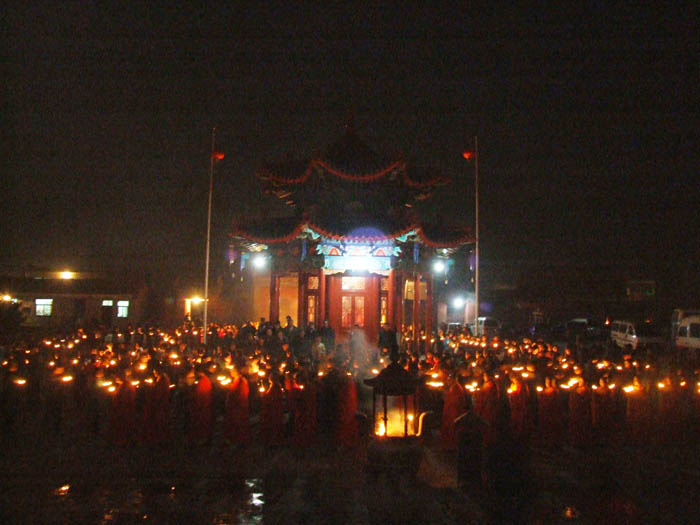 08年的春节人们在近年少有的寒冷中度过了春节,春节过后,天气逐渐转暖,正月十四晚,观音寺又开始了一年一度的祈福消灾传灯法会。来自各地的善信居士怀着真诚的愿望来到这个古刹道场参加盛会。