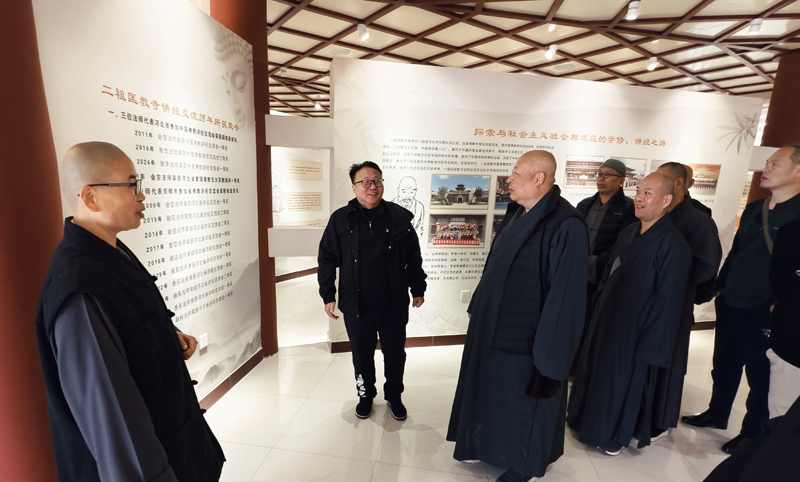 省佛协副会长、邯郸佛协常务副会长、二祖匡教寺住持会空法师向大家介绍了二祖匡教寺在践行佛教中国化、严抓教风建设、规范寺院管理等方面所做的工作。并带领大家巡礼祖庭,介绍了寺院在殿堂规划、设计等方面所体现的继承与创新,尤其是寺院引进开展的优秀传统文化活动项目如:书法、绘画、古琴、剪纸、茶道等文化活动得到大家欢迎,还不定期举办传统文化。佛学常识讲座。寺院博物馆众多富含历史信息的造像、石刻等收藏品的精美历史文化,为大家所深深折服。