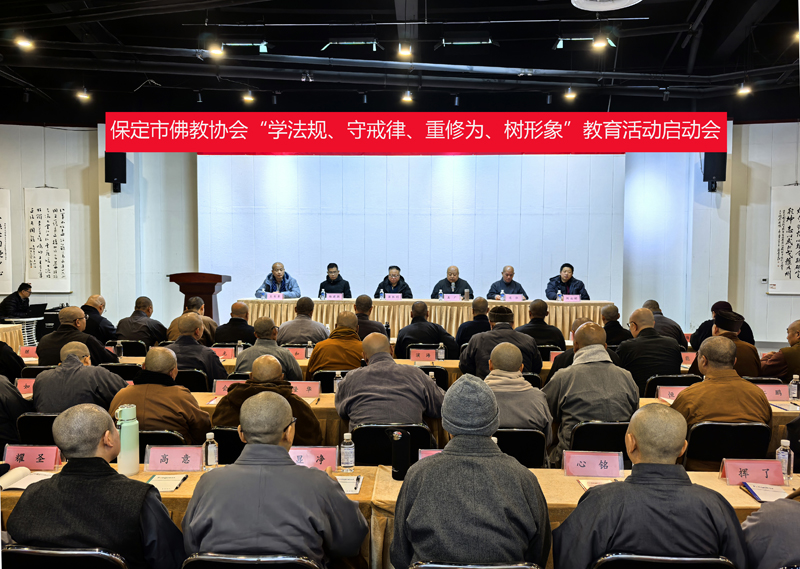 11月21日,保定市佛教协会“学法规、守戒律、重修为、树形象”教育活动启动会在大佛光寺隆重召开,保定市民宗局二级调研员崔胜利出席会议并讲话。市佛协会长真广法师主持会议并作动员讲话。市佛协会务班子成员、各场所负责人参加会议。