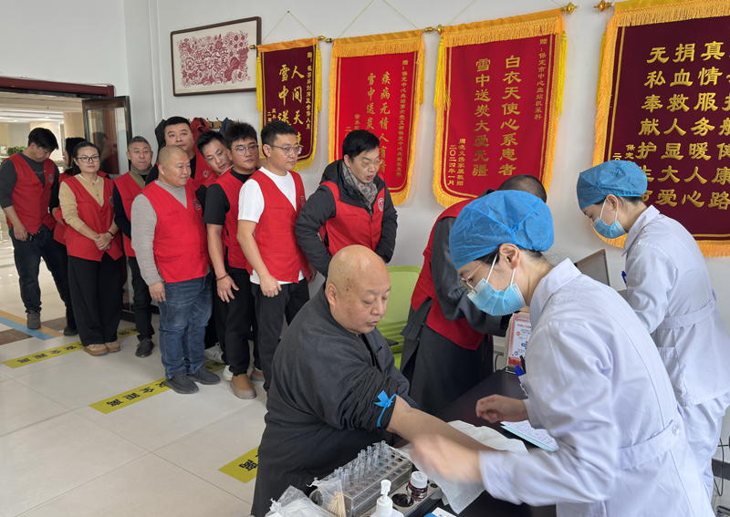 2025 年 12 月 14 日,冬日初雪为古城披上银装,却丝毫未冷却涌动的爱心。当日,保定市佛教协会会长、保定市爱心助力协会名誉会长真广法师组织20多人,冒着寒意走进保定市中心血站,以无偿献血的实际行动帮助他人,践行社会责任,让寒冷的冬日充满别样暖意。