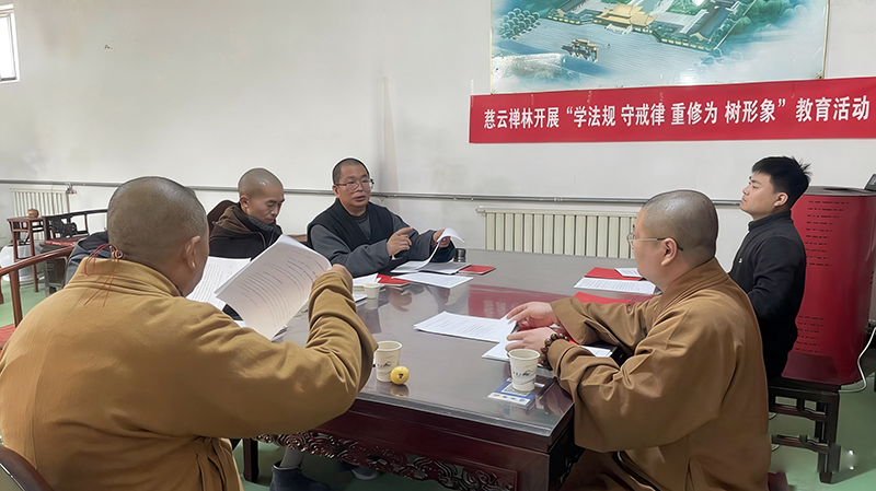3月12日,市佛协副会长寂禅法师按照市佛协深入推进“学守重树”教育活动工作安排,先后到高阳普慧寺、蠡县慈云禅林对“学守重树”教育活动开展情况进行指导检查。并带领场所教职人员和信众,共同学习了全国政协十四届四次会议精神、《宗教活动场所管理办法》、《汉传佛教活动场所皈依活动管理办法》、《汉传佛教活动场所主要教职任职办法》等内容。