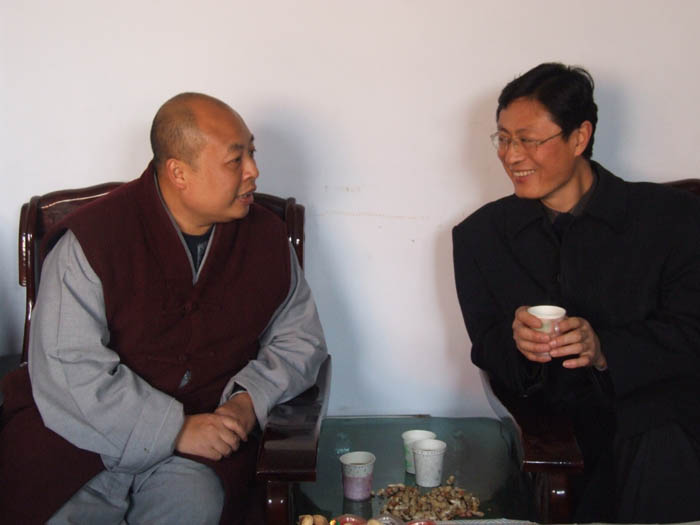 真广法师与蠡县宗教局局长王国宏亲切交谈