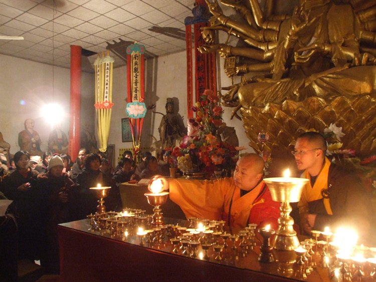庆祝释迦牟尼佛成道日的供灯法会正在举行。保定市佛教协会会长真广法师应邀出席了法会。为法会主法。并为参加法会的四众弟子做了开示。