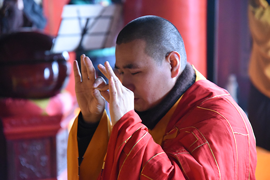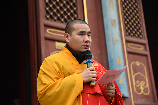 上午9时许,道悟法师带领四众弟子上殿进行佛事活动,共同持诵经咒,祈愿国家繁荣富强,世界和平,并作开示:希望大家在新的一年里有四个新