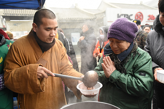 2017年1月5日农历腊月初八,保定真觉禅寺为纪念本师释迦牟尼佛成道,感恩广大信众的长期护持,隆重举行了释迦牟尼佛成道日祈福法会暨腊八节施粥。