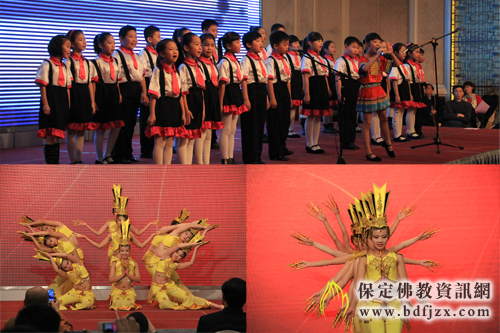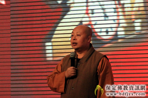 晚会开始首先播放了一个短片,回顾了保定市佛教协会及大慈阁等寺院一年来的工作及法事活动情况,市佛协会长真广法师首先向大家致以新年祝福,并讲到:过去的一年市佛协在各级领导的关怀及大众的支持下,本着“慈心待人,福利社会”这样一个目的,在文化慈善及法事活动等方面做了一些工作,接下来和大家一起分享了去年前往印度朝拜佛陀遗迹时的感受,而后真广法师带领大家共同祈愿,祈愿我们国家繁荣富强,社会更加和谐;祈愿每个人吉祥如意、消灾免难。