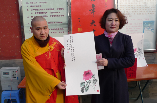 市佛协会长真广法师获悉后,非常忧心和关切,安排观音寺、大慈阁多多援助这个家庭。在微信上第一时间将自己的书画作品进行义卖进行捐款,并再次安排大慈阁在初一祈福法会上,将自己的书画作品进行义卖。