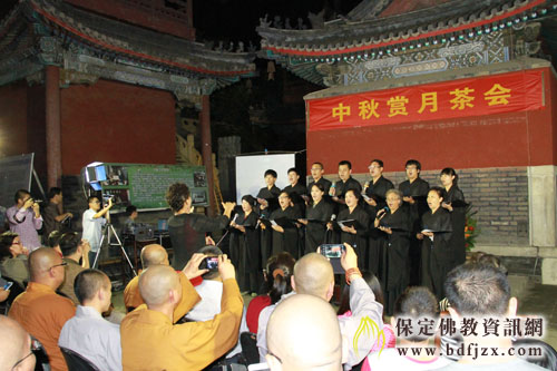 保定佛教资讯网讯(bdfjzx.com):2013年9月20日(农历八月十六),保定真觉禅寺(大慈阁)举行一年一度的“中秋赏月茶会”。晚会由保定电台中华老师主持。