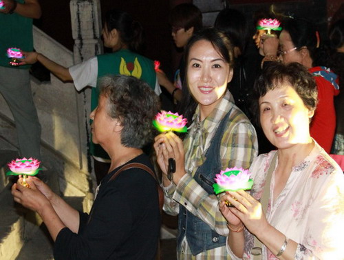 文艺表演活动结束后,真广法师带领大家在大慈阁千手千眼观世音菩萨前供灯祈福,祈愿国泰民安。最后大慈阁常住还为大家结缘了中秋月饼,愿大家阖家团圆幸福。