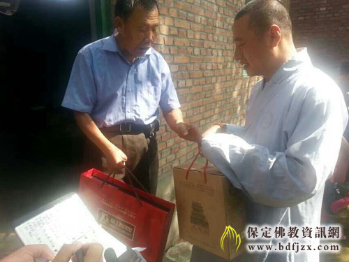 保定市佛教咨询网讯:二零一三年八月十五中秋节来临之际,大慈爱心社在市佛协会长真广法师的安排下,走进徐水、涞水40余户老人家里,为他们送去了节日的慰问和礼品,使孤单的老人们也感受到了团圆节日的喜庆,他们的行为也激发了更多人的善念,愿更多人加入到爱心活动中来,使社会更加和谐! 大慈爱心社电话:2029235