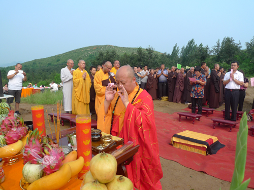 在即将建设万佛殿的位置由真广法师带领众法师举行了隆重的洒净仪式,而后由真广法师宣布“凤凰山佛光寺万佛殿正式开工”。