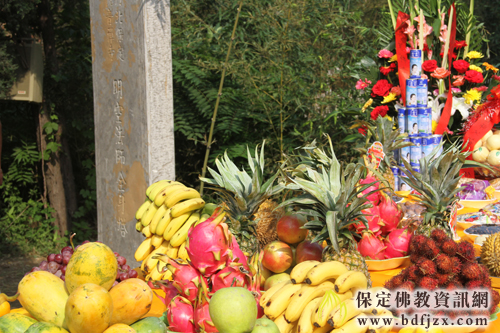 保定佛教资讯网讯:2013年8月9日(七月初三),保定清苑观音寺举行了纪念观音寺中兴祖师明空上人追思法会。上人的全身灵塔前,摆满了弟子们敬献的花篮和果品。参加法会的有观音寺、大慈阁、佛光寺、兜率寺常住法师,和来自各地的上人的皈依弟子,法会由明空上人弟子真广法师主法。法师讲到:“不知不觉间,师父离开我们已有17年了,现在的观音寺无论从寺院建设还是僧团建设都有了长足的发展,师父一定会高兴的。我们要学习继承师父的“不为自己求安乐,但愿众生得离苦的菩萨精神”努力把寺院建设得更好,保定的佛教事业发扬光大”。随后,四众弟子们共同诵念了经咒,法会在庄严地气氛中圆满结束。