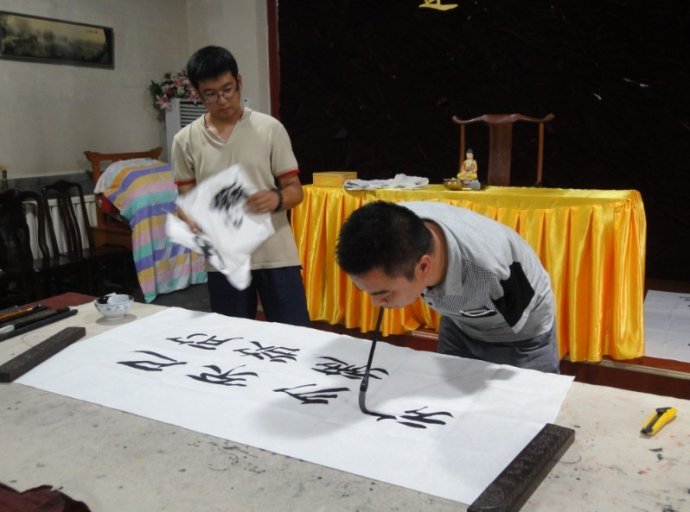 他开始倚靠椅子站立着,尝试用嘴巴咬着笔画画写字,一段时间过去了,他发现自己在画画方面可能没有天赋,于是他就一心投身于书法中了。由于每天咬着毛笔写字,他的牙龈发炎,连饭都不能吃,可他没有停止练习,忍着疼痛继续练习。这还不只,他贴着毛笔的嘴唇表皮紧紧的与笔杆粘在了一起,笔稍一动,嘴便破了皮,鲜红的血往下直流,流到他笔下的宣纸上面,一抹抹鲜艳的血色在纸上晕染开来,仿佛一朵朵生命之花,为他的勇气,坚韧的意志和对人生价值不懈的追求而绽放。他深知这是一段崎岖的路,他在前进的路上摔了一次又一次的跤,跌得头破血流,他擦干泪,对自己说,要坚强,要努力,要奋战到底!就这样十年苦练楷隶行草篆魏碑,无不研习苦书,虽无大成,却有所得。他以口噙管,用这种特殊的执笔方式,在宣纸上挥墨作书,写出了寓着他的刚强意志力与他的审美目光的书法作品,体现着中国文字的书法之美。他曾在省市书法赛中获奖以及第二届“洗笔泉”杯全国书法赛中获隶书二等奖,楷书作品《冬景赠刘景文苏轼》在赴中国文房四宝杂志社主办海外展出时受到国外收藏家所收藏,并被中国文房四宝杂志社特聘会员后又供职于北京残艺团,收到党和国家领导人江泽民、朱镕基以及时任中国残联主席邓朴方的亲切接见。在“5·12”汶川大地震后,他以大陆第一残障人士亲赴灾区作心灵援助,更获得了社会各界的极大反响和好评。