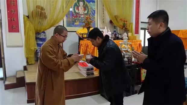 今天上午大佛光寺、观音寺住持寂禅法师与大慈阁住持、大慈爱心社副社长道悟法师先分别给予了一万元的救助金。