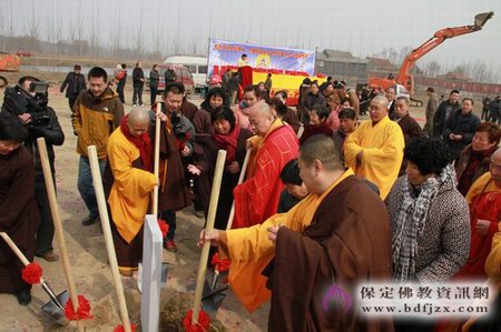 2013年3月2日,在万物复苏的初春季节,保定安新灵觉禅寺隆重举行了五百罗汉殿、西方三圣殿、地藏殿奠基典礼。奠基典礼由保定市佛教协会会长真广法师、灵源寺住持尊行法师、大善国寺住持明舟法师共同主法,市佛协秘书长王长革代表保定佛协出席典礼并致致贺词。保定市民宗局一处甄彩霞处长出席奠基典礼并致贺词,安新民宗局邢高峰局长等领导出席了典礼。出席典礼的法师还有果纬法师、妙严法师、定扬法师、亲如法师、能莲法师、愿弘法师等。