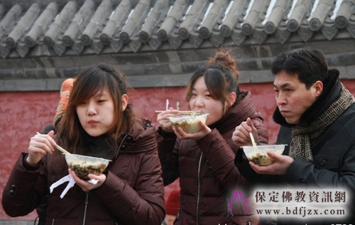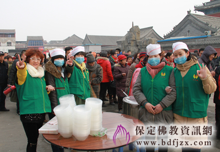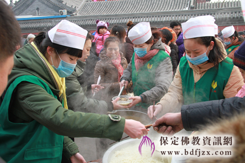 今天另一项重大的活动是寺院为大众准备了味道可口的“平安面”,自大慈阁开放以来每年的大年初一寺院都已“平安面”为大众结缘送福,祈愿大家在新的一年里平平安安吉祥幸福。这一活动已经延伸为为保定的民俗,有很多外地的朋友还专程赶来大慈阁感受寺院的年味,尝一尝寺院的平安面,在寺院外的空地上,寺院的义工冒着严寒为大家发放,寺院内外处处呈现出一派节日的喜庆气氛。