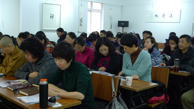 初冬的保定,人们无奈的忍受着寒冷和挥之不去的霾。但在保定北二环的十方书画院里,却是一派春天的景象,从各地涌来的“求法者”准时来到了道安书院这个流动的大讲堂学习佛教经论。