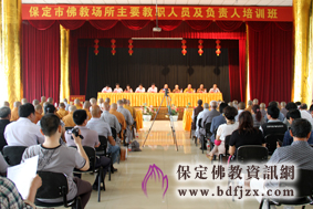 保定市佛教协会会长真广法师主持了此次活动,首先由李正如副局长讲话,他要求教职人员充分认识学习的重要性,珍惜学习机会,努力提升学习质量,学以致用,确实推动佛教事业良好发展。