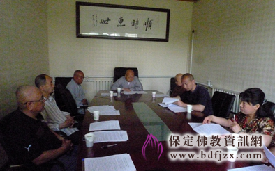 保定佛教资讯网讯:2012年5月25日上午,市佛协在真觉禅寺(大慈阁)召开了第二次会长办公会,参加会议的有会长真广法师,副会长明舟法师、亲如法师、刘建才居士,民宗局一处处长甄彩霞女士也参加了此次会议,会议由秘书长王长革主持。会议开始大家共同学习了刚刚闭幕的保定市市委十届三次会议精神,其中明确了建设京畿强市、善美保定的科学定位,以把保定建设成为低碳、高端、协调、善美的城市为目标,大家表示坚决响应和支持市委全会的精神。