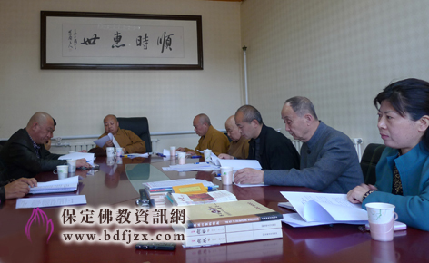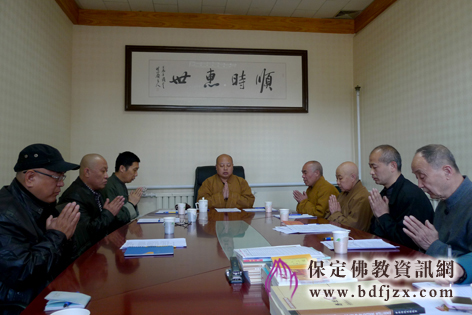 保定佛教资讯网讯:2012年4月6日上午,保定佛教协会会长学习、办公会议在真觉禅寺(大慈阁)召开,参加会议的有保定佛教协会会长真广法师、副会长明舟法师、亲如法师、贾树军居士、刘建才居士、秘书长王长革居士、副秘书长梁浩居士,保定市民宗局一处处长甄彩霞女士也参加了本次会议。