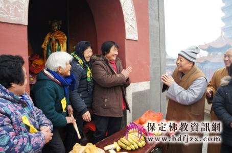 下午,真广法师来到义工队伍中看望大家,在寒冷中带给大家无限温暖。