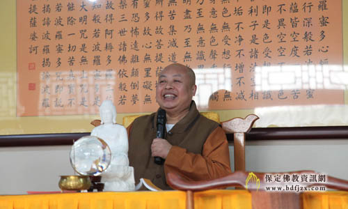 保定市佛教协会会长、保定市大慈阁住持真广法师为佛教青年们开示。师父教给大家要“广结善缘”,师父说,“结缘”就是“创造”缘分,如何创造缘分呢?那就是“给人信心、给人方便、给人欢喜、给人希望”,如此,才可以更好的经营自己的人生。师父告诉大家要多诵经,在诵经中了解菩萨是怎样做的,从而更好的学习。