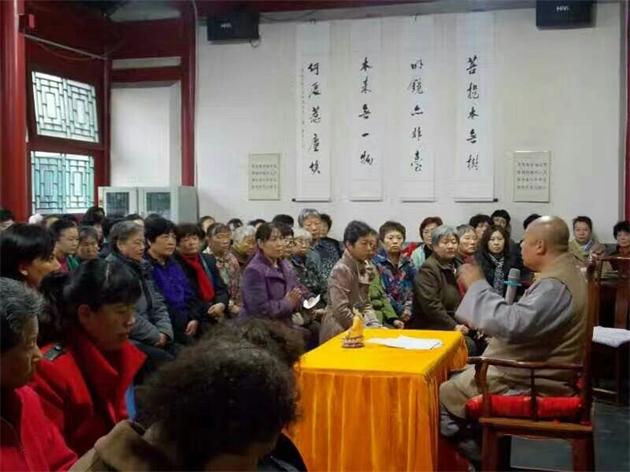 保定佛教资讯:2016年10月22日上午,在真觉禅寺(大慈阁)“莲池讲坛”,市佛协会长真广法师为“大慈阁法华班”及来自各县的众居士开示了法华妙义,真广法师不厌其烦的为大众一遍又一遍的重复学习、受持法华经的重要性,并回答了居士们学佛及学习法华经过程中的一些疑惑。