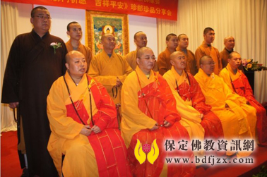 随后,莅临北京佛缘会的高僧大德等依佛门仪轨,举行了庄严的祈福仪式,祈愿正法久住、国泰民安、社会和谐、世界和平,祈愿2012平安吉祥,祈愿各界嘉宾身心康泰,并为《佛门祈愿 吉祥平安》珍邮珍品开光加持。