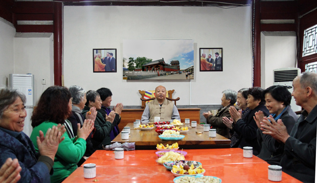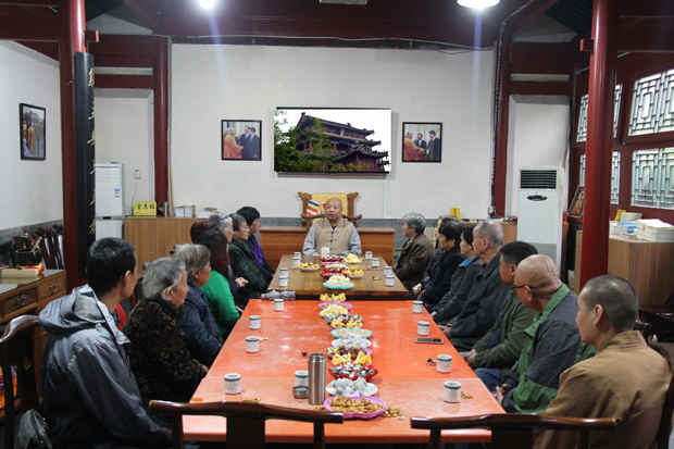 座谈会在大慈阁的方丈厅举行,十年了,老居士们再次相聚在这福善之地大慈阁,心情都格外高兴,尤其是有些多年不见面的老居士,是共同的信仰和大慈阁使他们今世结下了美好的善缘。会长真广法师和大家一起回顾了大慈阁回归前后各级领导、各界人士、教内高僧前辈为大慈阁所做的种种感人至深的事迹,并衷心感谢党和政府对大慈阁的支持和关心。