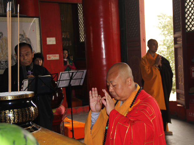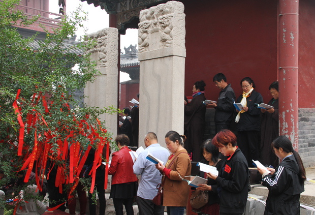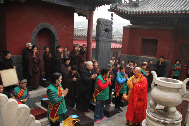 十月的大慈阁,充斥着雾霾的天气略显凉意,加之院内加装的消防设施尚未完工,给院内大众的行走带来不便,但这并未影响大众来寺院参加观世音菩萨出家日法会的热情愿望,在观世音菩萨慈悲愿力的感召下,义工、护法、居士、游客各安其份,各行其事,略显拥挤的院内却秩序井然,处处都显得那么和谐。