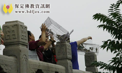 今天的法会内容包括绕佛、吉祥普佛、放生、三皈五戒、上大供、以及真广法师开示。六百余人参加了此次活动。