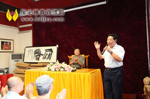 2011年6月21日上午九时,国家一级作家、诗人、书法家冯鹤菁老师受保定市佛教协会会长真广法师的邀请,在保定市真觉禅寺(大慈阁)院内的《莲池讲坛》展开了一场妙语连珠的精彩讲座。