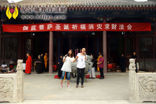 2011年6月14日,农历五月十三,在佛教的节日中今天是伽蓝菩萨圣诞,上午9:30,关岳行宫举办伽蓝菩萨圣诞消灾、祈福、求财、吉祥法会,法会安排诵经、放生等佛事活动庆祝圣诞,“和之声”佛教青年歌咏队部分成员在法会开始前用歌声表达了对这一节日的祝福。