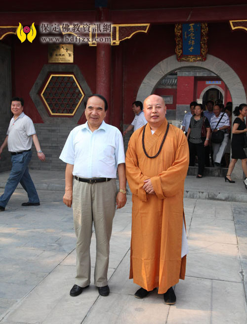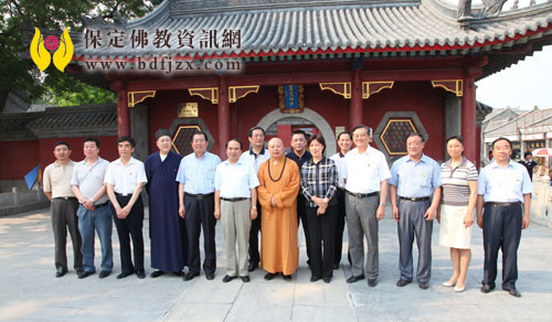 调研组一行与真广法师在大慈阁前合影