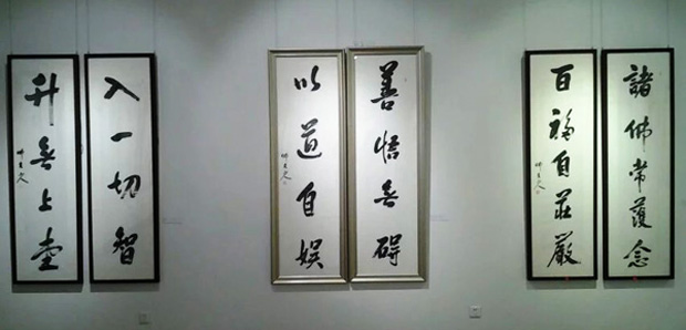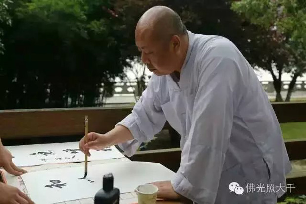 法师幼年便开始学习书法,临古人名帖,博采诸家之长,后广交书法智友,其所书圆融劲健,俊逸超尘,近年开始习练绘画,并将禅意和书画有机的融为一体,多次举办个人书画展,把一幅幅带着禅意美的作品奉献给社会大众,广结善缘。