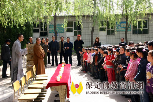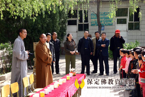 佛协慈善办公室主任与顺平县部分领导及佛光寺明月法师参观北康关希望小学