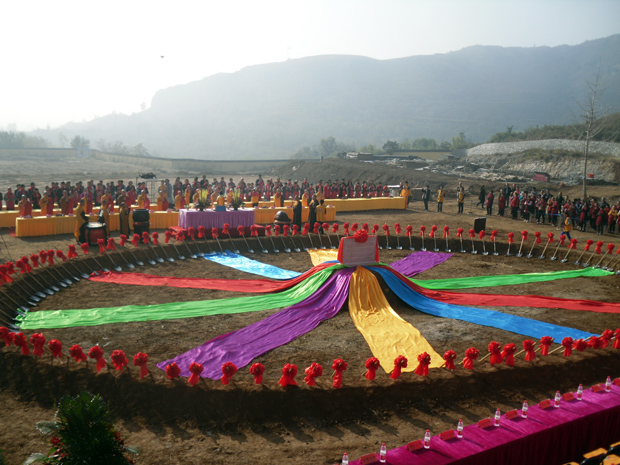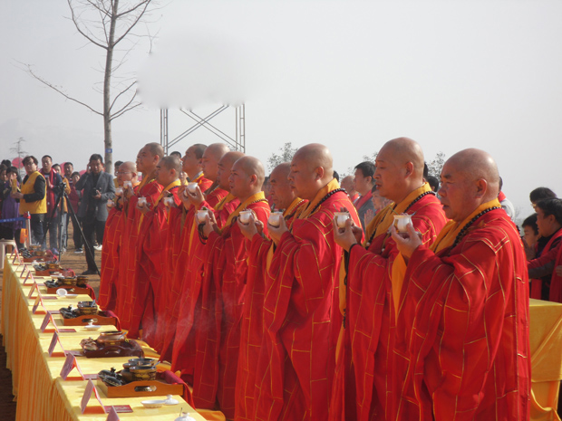 最后,真广大和尚说奠基法语,诸山长老和108位大雄使者培土奠基,以大雄宝殿为代表的二期工程正式开工。时近中午,法会圆满结束,大众欢喜,龙天赞叹。