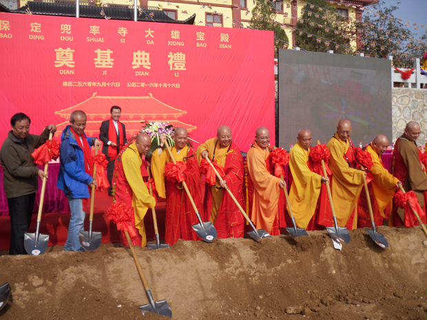 保定佛教资讯:2016年10月16日,保定兜率寺隆重举行大雄宝殿奠基典礼,应邀参加典礼的诸山长老有:河北省佛教协会副会长、保定市佛教协会会长真广大和尚,保定市佛教协会副会长、望都虚云禅寺住持明舟法师、满城华严寺住持如光法师、蠡县万佛寺住持道泓法师、唐县灵源寺住持遵行法师,徐水兴圣寺住持慧忍法师,安国广慧寺住持果一法师,博野正信讲寺住持开定法师,曲阳浮修寺住持戒修法师,保定慈云寺住持悟亮法师,顺平大佛光寺副住持道悦法师,张家口时恩寺住持普文法师,中国人民大学硕士、福建鼓山涌泉寺副寺妙圆法师,中国人民大学硕士、广东省佛教协会办公室主任妙一法师,中国人民大学硕士、长沙开福寺知客惟愿法师等,参加典礼的主要领导有徐水区民宗局副局长张国旗先生,保定市佛教协会秘书长王长革居士等,以及来自各地的艺术家、企业家、善信居士、大雄使者近2000人参加了此次盛会。