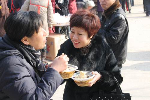 为与会大众结缘“平安面”