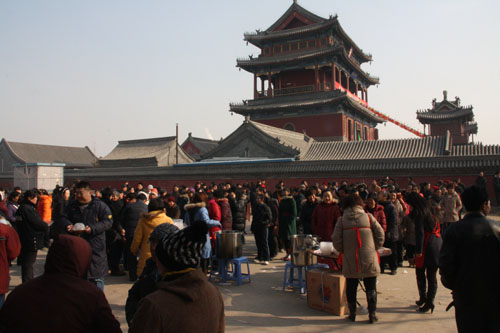 2011年2月3日上午,农历正月初一,保定市真觉禅寺(大慈阁)举办了2011迎新春祈福吉祥法会,此次法会由保定市真觉禅寺监院道悟法师主法,并带领与会信众读诵《普贤菩萨行愿品》。法会结束后保定市佛教协会会长、保定市真觉禅寺住持真广法师为前来参加活动的信众及游客准备了象征着吉祥的平安面与结缘礼物。今天大约有两千五百逾人次来到大慈阁品尝这里的平安面。大家法喜充满,高兴的心情溢于言表。
