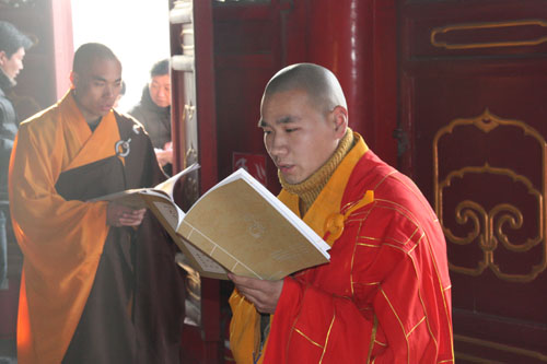 与会信众认真读诵