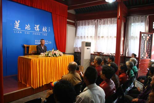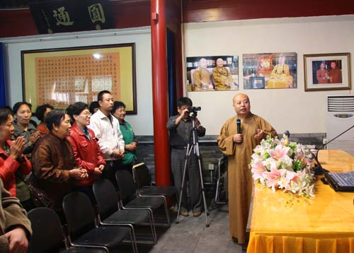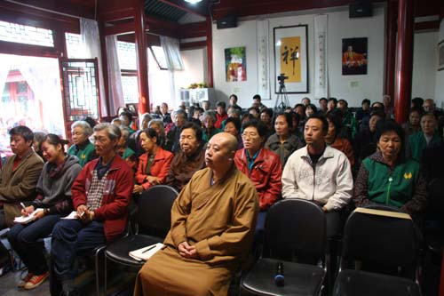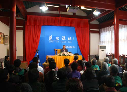 保定佛教资讯 2010年10月15日,受保定市佛教协会会长、保定市真觉禅寺(大慈阁)住持真广法师邀请,资深报人、著名作家黄复彩先生做客《莲池讲坛》,为大家讲解了皖峰长老及仁德长老的故事。真广法师主持了今天的活动。一百余人前来聆听。