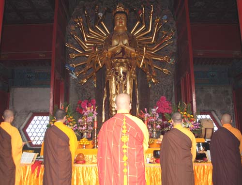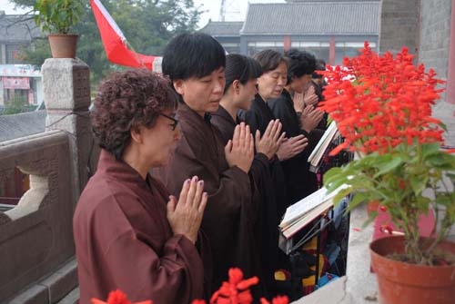 保定佛教资讯 2010年10月2日,今天是真觉禅寺举办梁皇宝忏法会的第二天,法会中僧俗二众共同虔诚祈愿礼拜。今天是由观音寺住持真源大和尚担任主法,有200余信众共同参与了活动。