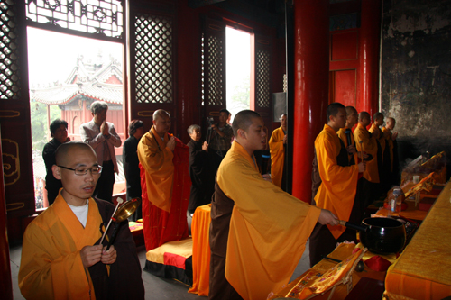 保定佛教资讯 2010年10月1日起,保定市真觉禅寺(大慈阁)举办为期五天的“护国祈福梁皇宝忏法会”,并于今天上午举行梁皇宝忏开坛及洒净仪式。