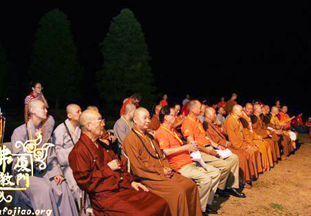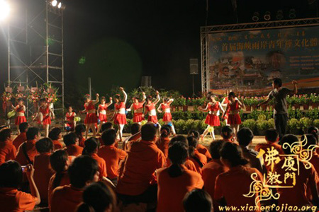 信息来自佛教在线 2010年8月18日晚,首届两岸青年禅文化体验营开营仪式在金门林务所隆重举行。在三宝歌声的祥和气氛中,三百余名两岸青年共同静思冥想。