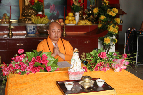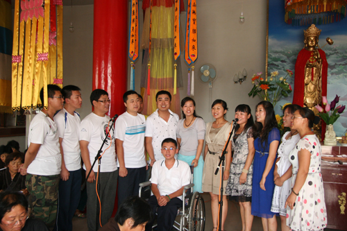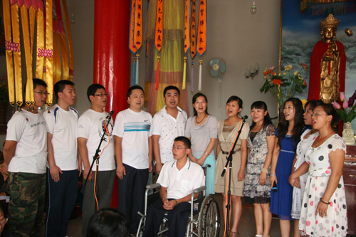 保定佛教快讯 2010年7月12日上午,保定市佛教协会真广法师受蠡县“普贤念佛堂”邀请,为当地信众举行“三皈五戒”活动。本次活动与以往有所不同,真广法师携“保定市佛教青年合唱团”的十余位青年成员共同前往参加了本次活动。